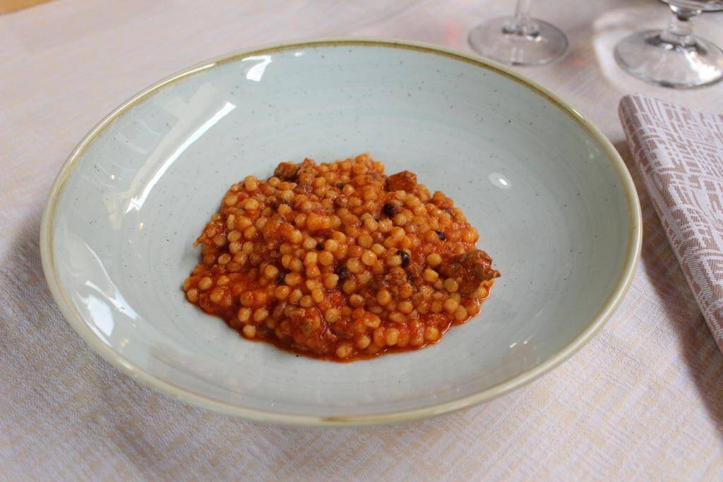 Südlich des Capo Ferrato erreichen wir unser heutiges Etappenziel im Süd-Osten der Insel, die Costa Rei mit unserem schönen kleinen Campingplatz direkt am Meer. Am Abend genießen wir im Restaurant ein typisch sardisches Menü mit Panada, Prazzida, Culurgionis, Fregola Sarda und natürlich su Proceddu.