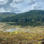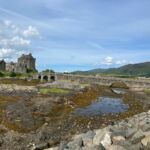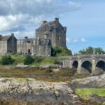 Der erste Teil unserer Fahrt findet noch auf der Isle of Skye statt. Wieder erfreuen wir uns über die grünen Hügel, die braunen, moorigen Bäche und Flüsse, mal Fjorde, die vom Meer hereinragen und dann wieder Seen. Unterwegs halten wir am „Highlander-Castle“ Eilean Donan Castle.
