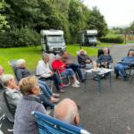 Dann geht’s weiter Richtung Süden. Wir fahren nun auf gut ausgebauten Straßen und kommen gut voran. Schließlich erreichen wir den Campingplatz in Dungannon. Bevor wir unsere abendliche Runde starten, schauen fast alle das EM-Endspiel im Damenfußball. Leider verliert Deutschland gegen England mit 1:2. Aber anschließend lassen wir uns die gute Laune nicht nehmen. Margarete und Siegfried laden zu einem Sekt ein. Der Grund: Alle sind wieder genesen und ab sofort sind wir keine geteilte Gruppe mehr. Wenn das kein Grund zum Feiern ist!!!
