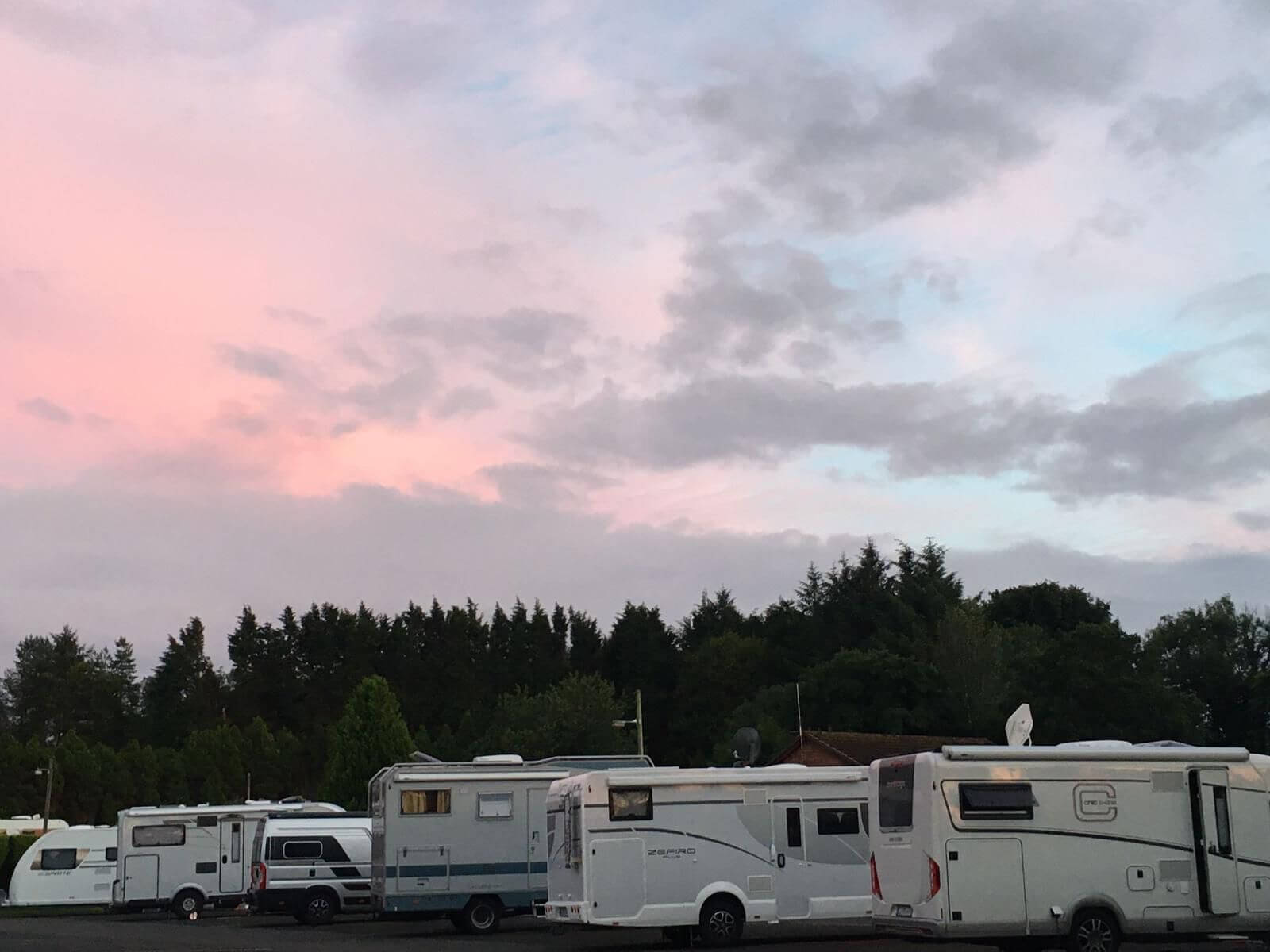 Dann geht’s weiter Richtung Süden. Wir fahren nun auf gut ausgebauten Straßen und kommen gut voran. Schließlich erreichen wir den Campingplatz in Dungannon. Bevor wir unsere abendliche Runde starten, schauen fast alle das EM-Endspiel im Damenfußball. Leider verliert Deutschland gegen England mit 1:2. Aber anschließend lassen wir uns die gute Laune nicht nehmen. Margarete und Siegfried laden zu einem Sekt ein. Der Grund: Alle sind wieder genesen und ab sofort sind wir keine geteilte Gruppe mehr. Wenn das kein Grund zum Feiern ist!!!