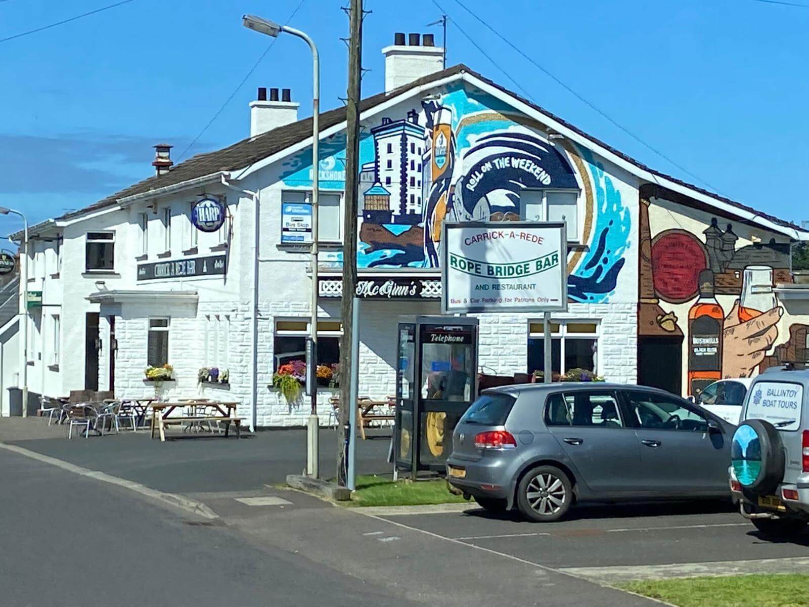 In Irland angekommen geht’s gleich nordwärts auf der wunderschönen Küstenstraße, dem Giants Causeway. Herrliche Blicke auf verschiedene Küstenformen bieten sich uns in Abwechslung zu kleinen Dörfern mit bunten Häusern. Wir genießen die Fahrt durch den Norden Irlands.