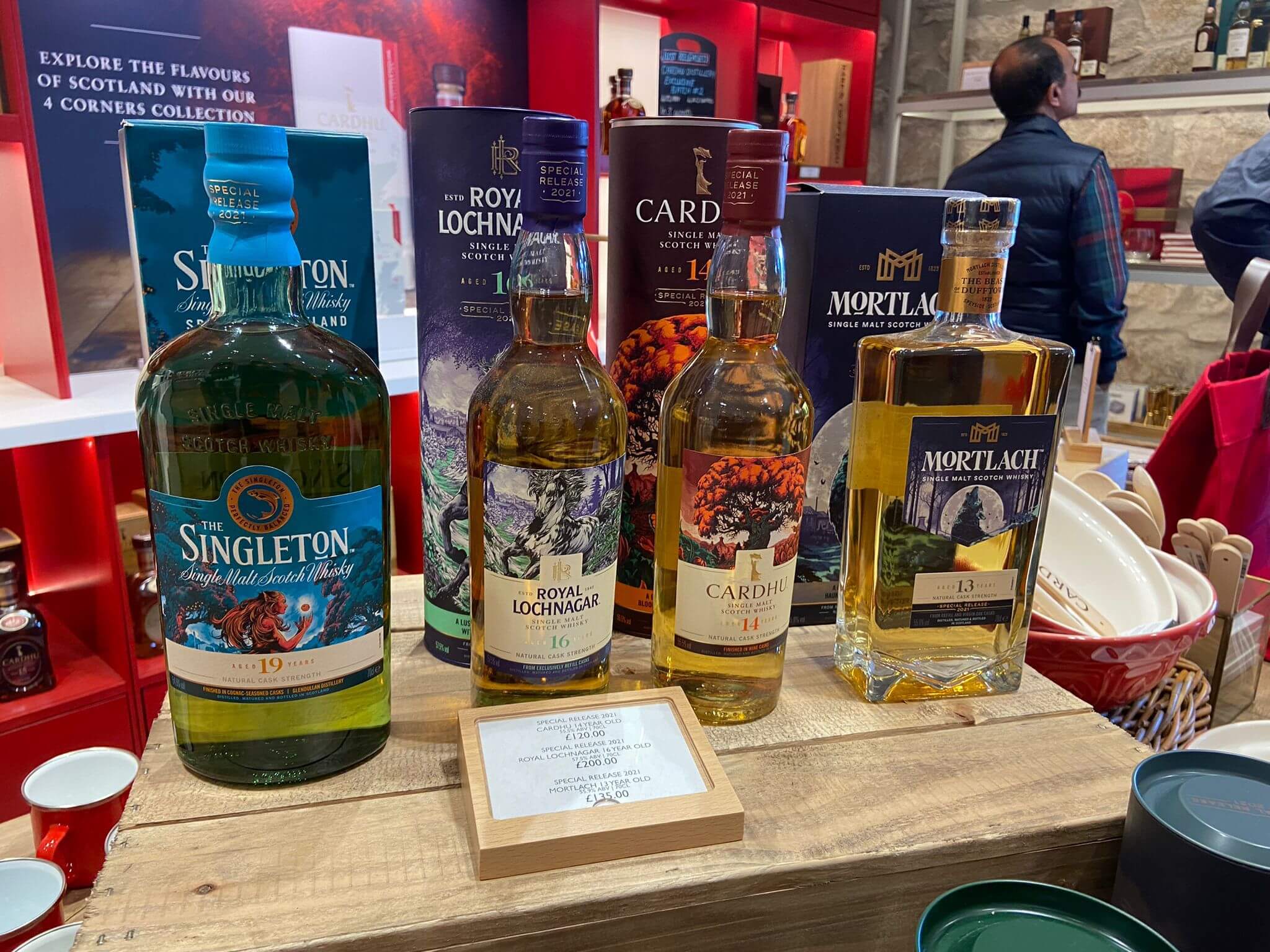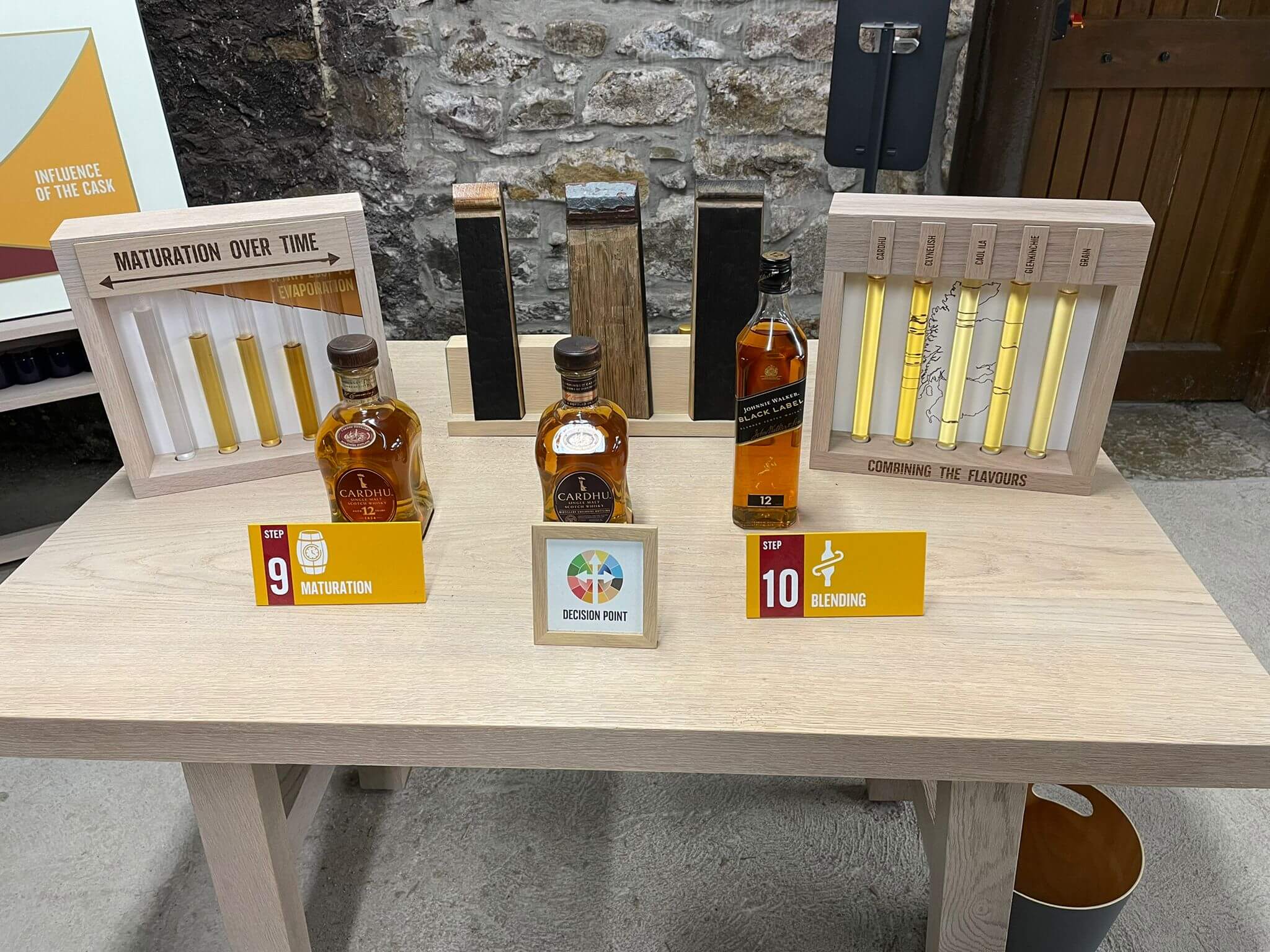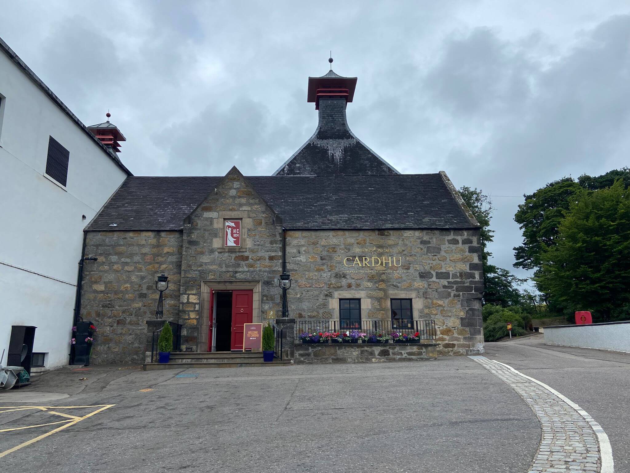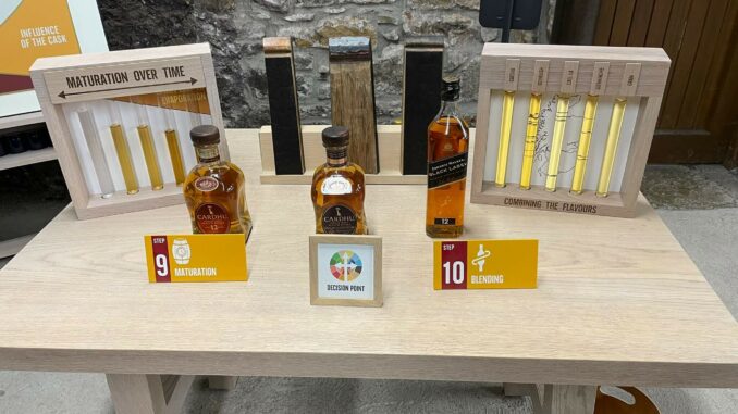 Obwohl eigentlich bei Planung der Reise keine Führung in einer Whisky Destillery stattfinden konnte, so ist es heute doch möglich. Nach einigen Telefonaten haben wir einen Termin bei Cardhu Distillery. Wir fahren also am Morgen in die Region der Destillerien. Wir sehen Chivas, Glenfiddich, Glenlivet und andere. Schließlich erreichen wir Cardhu. Wir werden erwartet und bald beginnt unsere Führung mit einem Film über die Entstehungsgeschichte der uns so bekannten Firma, die u.a. den berühmten Johnny Walker hervorbringt.