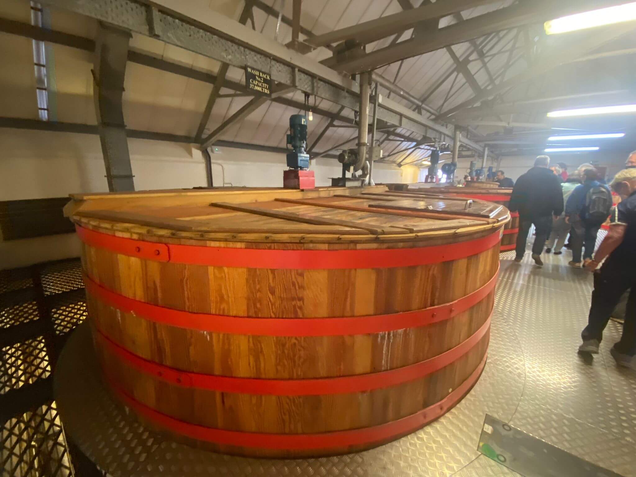 Es folgen die großen Fässer in denen der Gärprozess stattfindet und von da aus geht’s weiter in die Gewinnung des Alkohols.