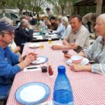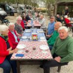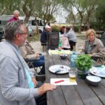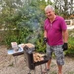 Am Nachmittag treffen wir uns. Tische werden bereitgestellt, Getränke, Grills und Lebensmittel herbeigetragen. Unser Peter hat heute Geburtstag, wir gratulieren ihm mit einem Ständchen und außerdem möchte er die Getränke übernehmen. Schließlich sitzen wir schön beieinander, essen, trinken, erzählen und feiern miteinander.