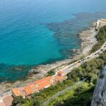 Wir gehen bis auf etwa 250 m hinauf. Hier ist der Ausblick am schönsten und man kann direkt vom senkrecht abfallenden Felsen hinunter auf die Stadt am Meer schauen. Der mächtige Dom sieht von hier fast klein aus.