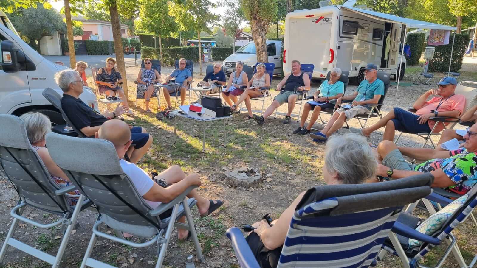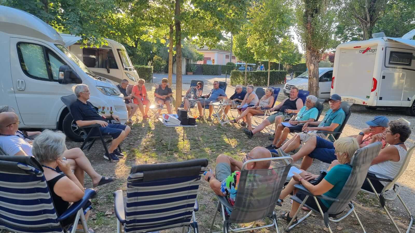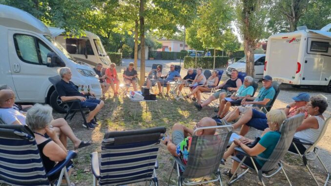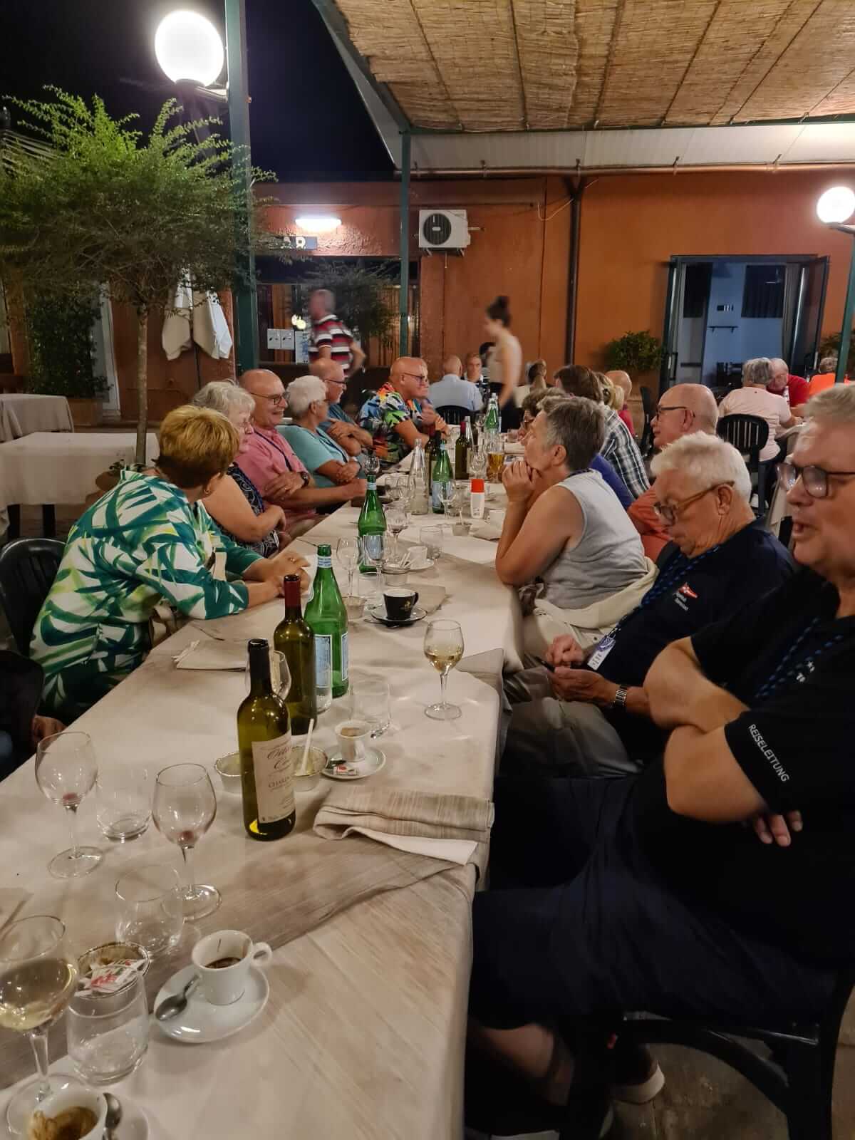 Heute sind die letzten 8 Teilnehmer unserer Gruppe in Rom eingetroffen. Nachmittags kam zum Glück etwas Wind auf und die 30 Grad im Schatten waren hier in Rom besser zu ertragen. Zur Begrüßung gab es einen Schluck Wein, Navis und Geräte für die Führungen wurden verteilt und alles für die Tour Wichtige erklärt. Wir alle 20 (Teilnehmer) sind gut drauf und freuen uns auf die schöne Tour und die vielen Eindrücke. Das folgende Begrüßungsessen war vom Feinsten: zweierlei Vorspeisen, Pasta und dann als Hauptgericht auf offenem Holzfeuer gegrilltes Fleisch mit köstlichen Pommes, zum Abschluss Tiramisu, was will man mehr. Dazu gute Weiß- und Rotweine, Wasser und Espresso. Ein typisch italienisches Abendessen, nachdem wir selig ins Bett gehen konnten. Der Kennenlernabend war ein voller Erfolg!