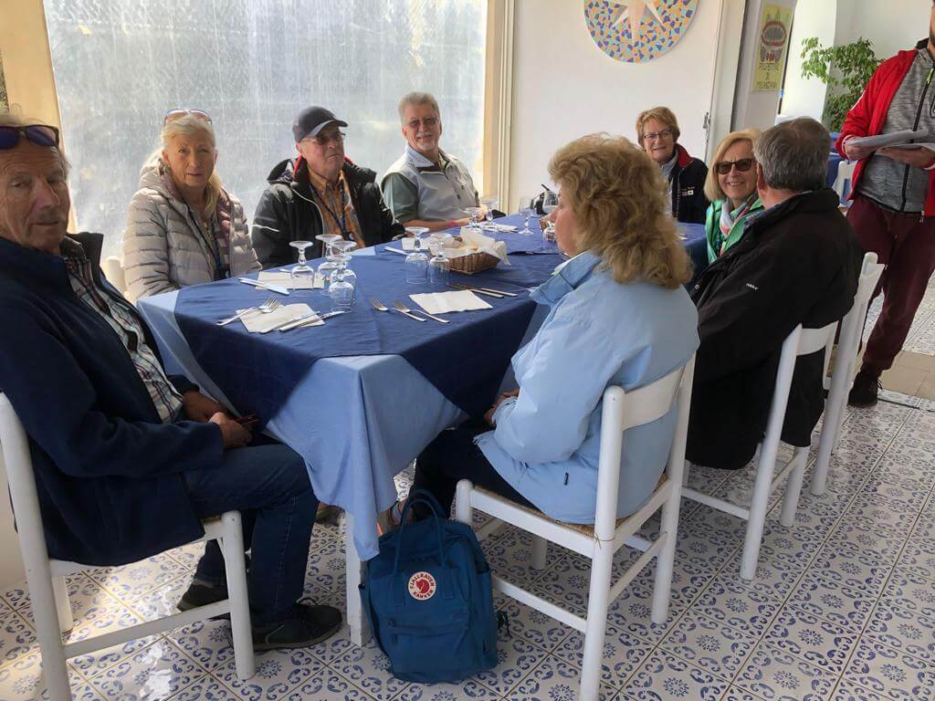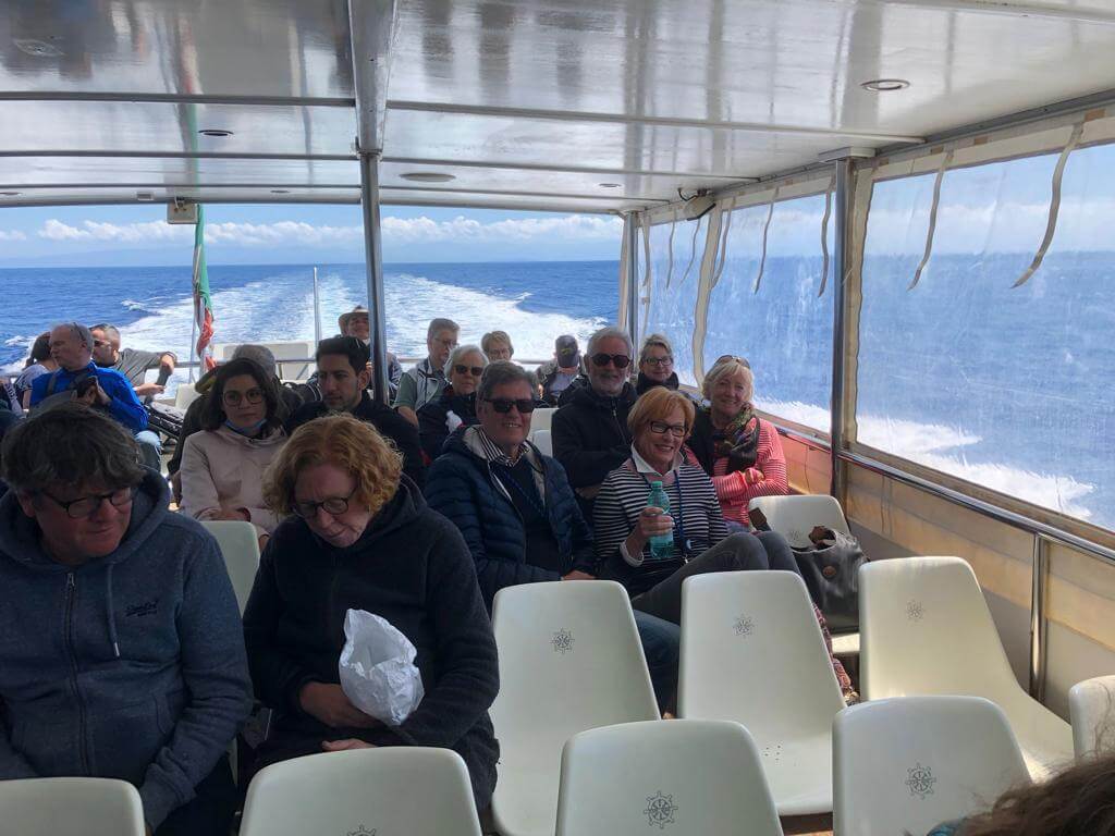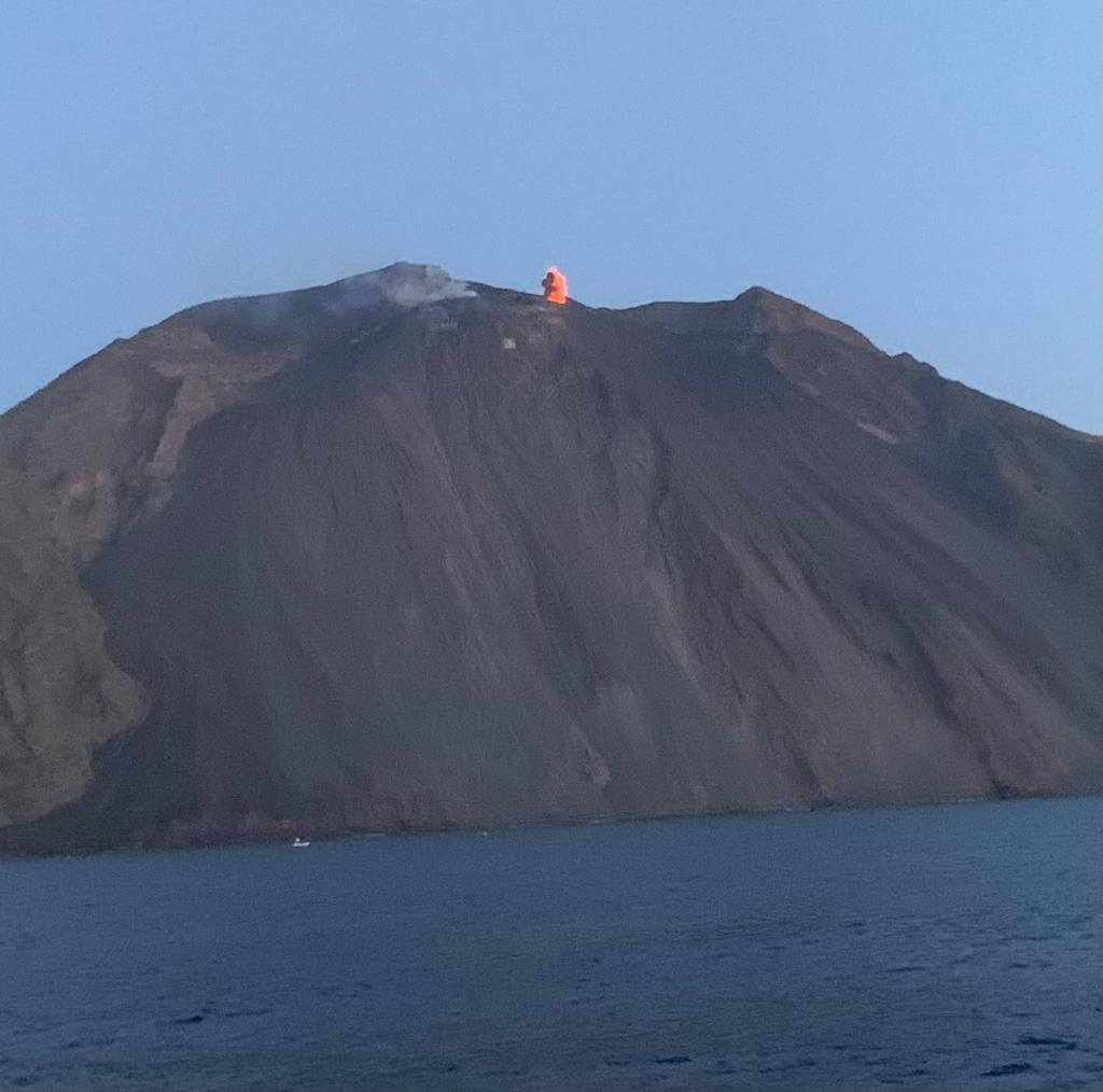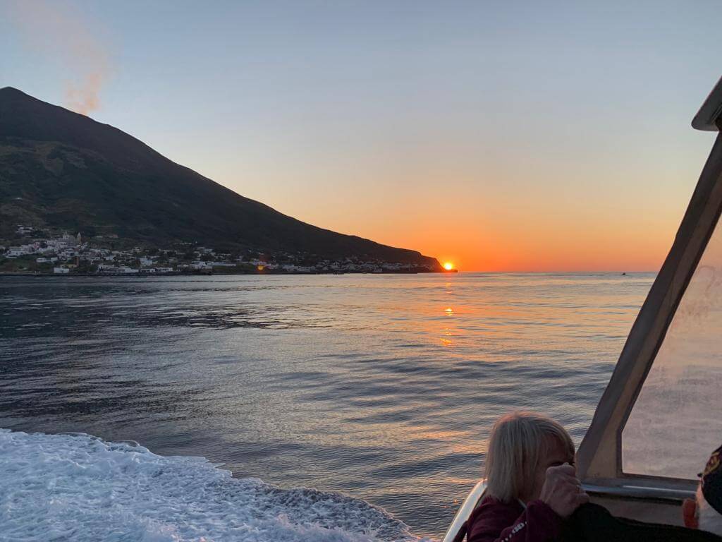 Gegen 11 h fuhren wir mit dem Bus nach Milazzo, wo wir in ein 20 Knoten schnelles Boot stiegen, das uns zunächst zur Insel Panarea brachte. Dort konnten wir jeder für sich die Insel erkunden und auch ein Mittagessen einnehmen. Am Nachmittag ging es dann weiter zur Insel Stromboli, wo wir ebenfalls zu fuss die Insel erforschten und viele sich vor dem Höhepunkt des Tages noch mit einer Pizza stärkten. Am Abend ging es nämlich weiter mit dem Boot und wir konnten zunächst einen märchenhaften Sonnenuntergang genießen, der vor der Kulisse der Felseninseln atemberaubend war. Dann erlebten wir insgesamt 3 Vulkanausbrüche vom sicheren Meer aus mit feuerroten Lavaeruptionen im Abstand von ca. je 15 Minuten. Es war gar nicht so leicht, die Kamera ständig auf den Kraterrand zu richten und im richtigen Moment den Auslöser zu betätigen. Mit Volldampf voraus ging es dann in ca. 2 Stunden zurück in den Hafen von Milazzo, wo uns der Bus zum Rücktransfer ins Camp schon erwartete. Auch wenn wir erst gegen 23 h zurück waren, hat sich der Ausflug auf jeden Fall aufgrund der unvergesslichen Erlebnisse gelohnt.