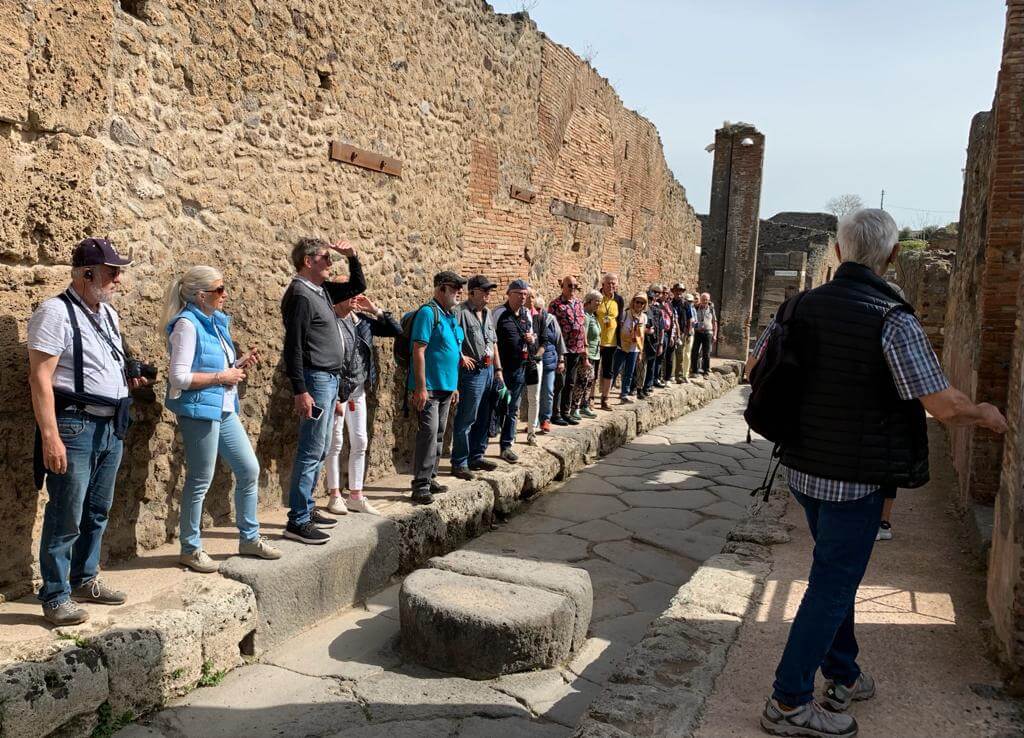 Da unser Camp direkt bei den Ausgrabungen von Pompeji gelegen ist, konnten wir zu Fuß diese mit unserer Touristenführerin Loredana besichtigen. Sie erklärte uns anschaulich wie das Alltagsleben zur damaligen Zeit war und erläuterte die Aktivitäten in den einzelnen Stadtzonen. Am Nachmittag fuhren wir an der atemberaubenden Amalfi Küste entlang und kamen gar nicht aus dem Staunen heraus wie unser Busfahrer die engen Kurven und Dorfdurchfahrten meisterte. Zurück fuhren wir mit dem Boot von Amalfi nach Salerno und genossen die warmen Sonnenstrahlen in Verbindung mit den herrlichen Aussichten auf die Küste.