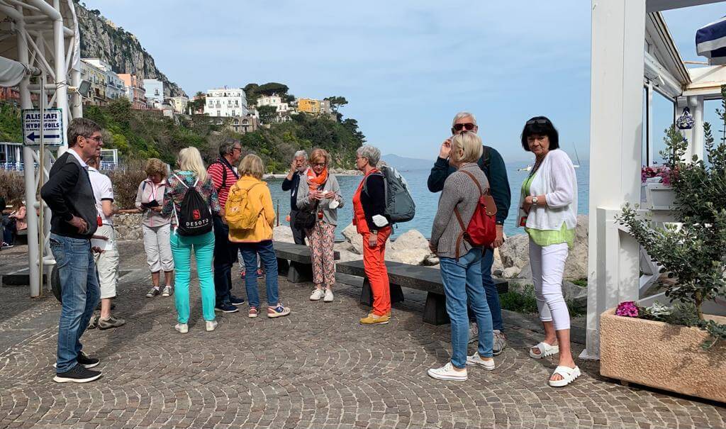 Schon früh um 7:50 Uhr holte uns der Bus am Camp ab, um uns zum Hafen von Neapel zu fahren. Von dort fuhren wir mit dem Tragflügelboot zu der wunderschönen Insel Capri. Mit einer Standseilbahn fuhren wir zum 200 m hoch gelegenen Stadtzentrum, wo unsere Stadtführerin Loredana uns die Sehenswürdigkeiten zeigte. Den Nachmittag hatten wir zur freien Verfügung und jeder konnte die Insel auf seine Art näher kennen lernen.