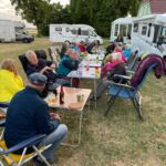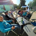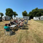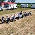 Am frühen Freitagnachmittag war unsere Gruppe dann komplett. Es war ein schönes Wiedersehen, hatten wir uns doch alle schon sehr darauf gefreut, die alten Erinnerungen von unserer Reise wieder aufleben zu lassen. Marita und Werner hatten keine Arbeit und Mühen gescheut, uns das Wochenende so angenehm wie möglich zu gestalten. Es fing damit an, dass eine Wiese abgemäht war und wir dort einen Fahrzeugkreis bilden konnten.