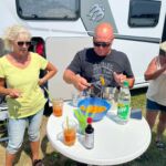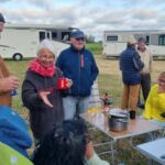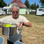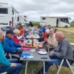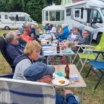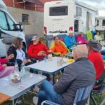 So sitzen wir lange beieinander, bis uns die Kälte schließlich so unter die Haut kriecht, dass wir die Wärme in unserem Wohnmobil suchen. Am nächsten Morgen scheint wieder herrlich die Sonne und wir können draußen sitzen und uns in unserem Wohnmobil Krahl unterhalten. Viele schöne Gespräche und besseres Kennenlernen stehen im Mittelpunkt. Zur großen Überraschung und Freude aller kommt Karl-Heinz plötzlich mit einem großen Topf Weißwürste an und wir machen ein wunderbares Weißwurstfrühstück mit süßem Senf und Salzbrezeln.