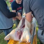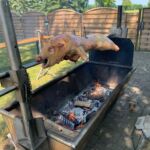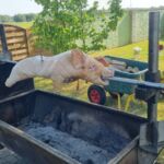 Während wir gemütlich sitzen, und Rock Shandy genießen, wird nebenan bereits der nächste Höhepunkt vorbereitet. Max, der Enkel von Marita und Werner hat eine Sau organisiert und bereitet diese am Spieß vor, damit für uns alle ein gutes Abendessen zubereitet werden kann.