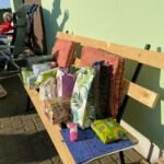 Und während die Sau langsam vor sich hin brutzelt, nimmt Gerhard die Sache in die Hand. Er hat einen Losverkauf vorbereitet. Jeder sollte ein kleines Geschenk mitbringen und darf nun fünfmal in den Lostopf greifen. Gegen einen kleinen Obolus, der schließlich unserem lieben Rafik in Südafrika zugutekommen soll.