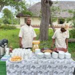 Bald sehen wir die ersten Tiere. Am Tor zum Park, es ist schon fast 10.00 Uhr, ist Frühstückspause. In Windeseile packen die Ranger ein Frühstückspicknick aus, welches sich sehen lassen kann. Kaffee, Tee, Müsli, alles da. Dann schaukeln wir weiter über die kleinen Pfade durch den Park.