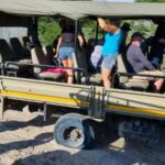 Heute müssen wir besonders früh das gemütliche Bett verlassen. Bereits um kurz vor 6 stehen die 2 Safari Trucks für unsere Gruppe bereit. Alle sind pünktlich da und so verlassen wir um 6 Uhr in der Früh das Camp Richtung Moremi Nationalpark. Es ist noch kühl am Morgen und bei zügiger Fahrt ist eine Jacke noch sinnvoll. Diese wird jedoch schnell überflüssig, nachdem die Sonne höher gestiegene ist.