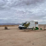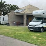 Der kleine Ort Henties Bay lädt zu einigen Lebensmittelkäufen im Supermarkt ein. Weiter geht’s und bald erreichen wir Swakopmund. Wir sind beeindruckt von der Architektur der Stadt. Türmchen, Fachwerkhäuser, kleine Geschäfte in Fußgängerzonen. Wir fühlen uns, wie in der Heimat. Der wunderschöne Campingplatz kommt uns nach der langen, strapaziösen Fahrt wie eine Belohnung vor. Nahe beim Strand parken wir auf kleinen, gepflegten Rasenparzellen. Jeder vor seinem eigenen Wasch- und Badehaus. Jeder hat einen ordentlichen Grillplatz und eine Terrasse zum Sitzen. Wir fühlen uns wohl und befreien erst mal das Innere unserer Mobilen von dicken Staubschichten.