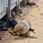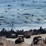 Wir erreichen die Seehundkolonie und Cape Cross. Beides liegt an der Skelettküste. Es ist die größte regionale Seehundkolonie. Dann geht’s Richtung Süden am Meer entlang. Herrlich ist es! Der Wind bläst ordentlich von Westen. Nachdem wir den ganzen Tag und auch die letzte Woche in staubiger, trockener Luft verbrachten, tut nun die frische Seeluft besonders gut. Wir atmen durch! Wir erreichen das Schiffswrack, bei dem wir ein obligatorisches Foto schießen.