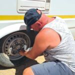 Gestern waren wir sehr früh auf den Beinen, heute starten wir eher spät in den Tag. Unsere Fahrtstrecke ist nicht sehr lang. 180 km Gravelroad. Diese ist auch einigermaßen gut, dennoch müssen insgesamt 5 Reifen dran glauben, 3 davon auf der Strecke, 1 am Anfang und 1 am Ziel.