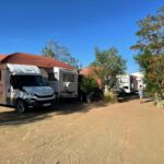 Unterwegs besuchen wir die Hammerstein Lodge um Pause zu machen. Ein Kaffee oder Tee, etwas Erfrischendes, so lässt sich die Hitze bei etwa 36°C ertragen. Schließlich erreichen wir Maltahöhe. Wir verteilen die Wohnmobile auf dem nahezu Schattenrissen Platz. Als fast alle stehen kommt noch ein Wohnmobil um die Ecke! Unser Robert ist wieder bei uns. Er berichtet uns sehr positives: es war doch kein Herzinfarkt! Alle freuen sich mit ihm! Das erst, was er möchte: EIN BIER!!!