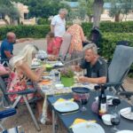 Na, was war denn das heute Nacht? Gegen Mitternacht gab es ein heftiges Gewitter und hat uns ordentlich durchgeschüttelt, ebenso wurden unsere Concordes dabei vom Staub befreit. Aber am Morgen schien dann schon wieder die Sonne. Heute musste uns leider Sepp aus persönlichen und privaten Gründen die Heimreise antreten. Schön für die Hochzeitsgäste in Deutschland, aber sehr schade für uns. Natürlich haben wir das gebührend am Vorabend bis ca. 23:00 gefeiert. Es war ein wunderschöner, sehr geselliger Abend. Heute am Ruhetag wollen wir grillen, doch laut verschiedener Wetterapps war am Nachmittag Regen anvisiert. Hallo Petrus, wir wollen heute grillen, und haben Grillgut im Kühlschrank! Wieder haben wir Glück, die Sonne lugt hinter den Wolken hervor, und ehe wir uns versehen, ist der Himmel wieder strahlend blau! Hat da KUGA seine Hand um Spiel?? Wie auch immer, das Grillfest findet statt, und wir haben einen vergnügten Abend gehabt! Morgen geht’s dann weiter im Lande des Don Quichotes.