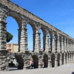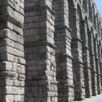 Das Highlight des heutigen Tages ist die Besichtigung von Segovia (UNESCO Weltkulturerbe), früher bevorzugte Residenz der kastilischen Könige. Wir parken etwas außerhalb des Zentrums bei der alten Stierkampfarena, wo auch das Aquädukt beginnt. Erst gleicht es einer Stadtmauer und ist daher nicht gleich zu erkennen. Im weiteren Verlauf sehen wir die beginnenden Rundbögen, die immer höher und höher angeordnet sind. Insgesamt sind es 166 Rundbögen aus Granit mit einer Höhe von 7 bis 28 m. Das Aquädukt aus dem 1. Jhd. n. Chr. ist mit einer Gesamtlänge von 728 m das größte erhaltene römische Bauwerk in Spanien.
