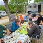 Heute können wir ausschlafen und die Seele baumeln lassen. Es ist warm und sonnig, ideal zum Relaxen. Einige gehen im Pool schwimmen oder fahren mit dem Rad. Ansonsten wird geputzt, Wäsche gewaschen, oder eben das erledigt, was in den letzten Tagen zu kurz kam. Immerhin sind wir schon 2 Wochen unterwegs. Am Nachmittag treffen wir uns zur Campertafel. Es werden die Grills aufgebaut, ein Buffet vorbereitet und auch an Getränken fehlt es nicht.