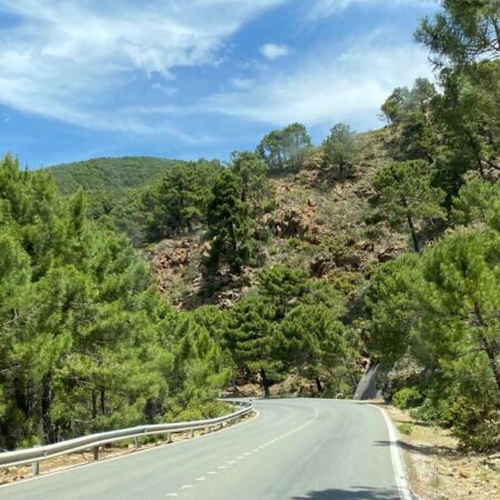 Wir sind jetzt am Mittelmeer, an der Costa del Sol, und der böige Wind ist plötzlich weg! Erstaunlich, was die wenigen Kilometer ausmachen! Ein Teil der Strecke führt nahe am Strand vorbei. Wer möchte, kann jetzt einen Badestopp einlegen. Bei Marbella erreichen wir den Ort der Reichen und Schönen. Man sieht dies sofort an den Fahrzeugen, die uns begegnen und an den mondänen Villensiedlungen, die sich an die Berghänge schmiegen – natürlich mit Meerblick!