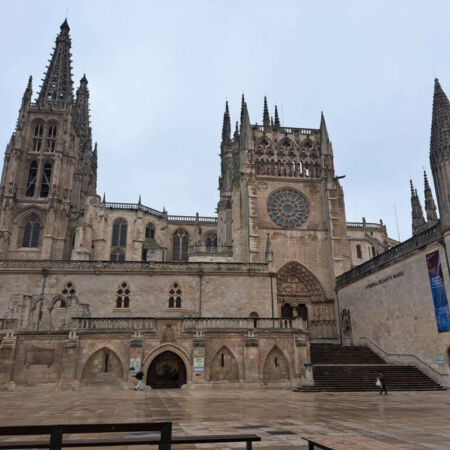 Burgos liegt auf einer Höhe von 860m, auf der nordkastilischen Hochebene, der Meseta. Hier pfeift der Wind! Der Volksmund sagt: 9 Monate Winter und 3 Monate Hölle. So extrem sind die Temperaturen! Auch wir bekommen das bei unserer Führung durch die Altstadt zu spüren: + 6 Grad und starker Wind. Da war die Führung durch die Kathedrale sehr angenehm. Aber der Reihe nach: