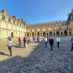 Christelle bringt uns heute das Schloss und die Gärten von Fontainebleau näher. Insbesondere Franz I., mit seinem Salamander, bleibt für die weitere Reise in Erinnerung. Es geht weiter nach Chartres, wo am Abend, nach einem Fußmarsch die farbliche Beleuchtung der Kathedrale und der Stadt auf dem Programm steht.