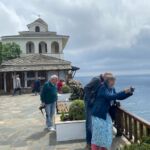 Thassos, zwölftgrößte und nördlichste bewohnte Insel Griechenlands, wurde heute mit dem Bus erkundet. Pünktlich ab 8:15 Uhr brachte uns unser Bus zum Hafen von Keramoti. Nach ca. 40 Min. mit der Fähre über das Thrakische Meer begann unsere Fahrt in Limenas einmal um Thassos auf der Küstenstraße herum. Das Wetter zeigte sich durchwachsen anfangs kühl, später mit Sonne und 19 °C busreisefreundlich. Unseren ersten Stopp legten wir im Urlauberort Limenaria ein. Über dem malerischen Hafen der Stadt thront ein ehemaliges Gebäude von Krupp, welches leider dem Verfall preisgegeben ist. Das ließ uns nicht davon abhalten, in den kleinen Gässchen einige Souvenirs zu erwerben. Thassos ist bekannt für ausgezeichnetes Olivenöl und Honig. Unser nächster Stopp ermöglichte die Besichtigung des Klosters Archangelou. Die wunderschöne Aussicht verlockte zum Fotografieren. Vorbei am Paradies- und Goldstrand von Thassos ging es zurück nach Limenas, wo in einem Hafenrestaurant eine leckere Dorade auf jeden wartete. Die vielen Eindrücke und die frische Seeluft ließen den Tag nicht langweilig werden, erzeugten aber auf der Rückfahrt schon leichte Müdigkeitserscheinungen. Die wurde jedoch je unterbrochen, als unser Busfahrer eine Schildkröte von der Kreuzung rettete, die diese quer überqueren wollte. Am Abend fand die nächste Teilnehmerbesprechung statt. Für die nächsten drei Tage gilt es wieder vieles Neues über Nordgriechenland zu erfahren.