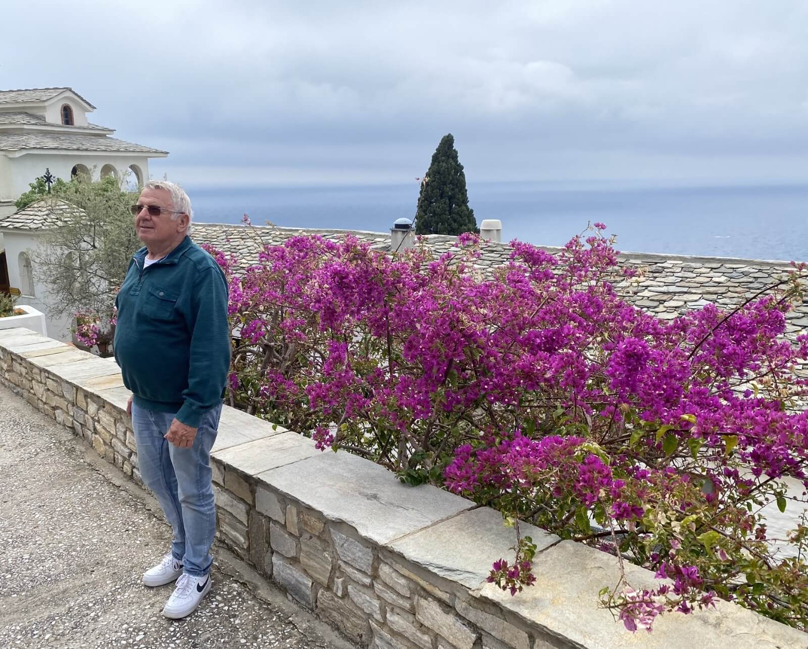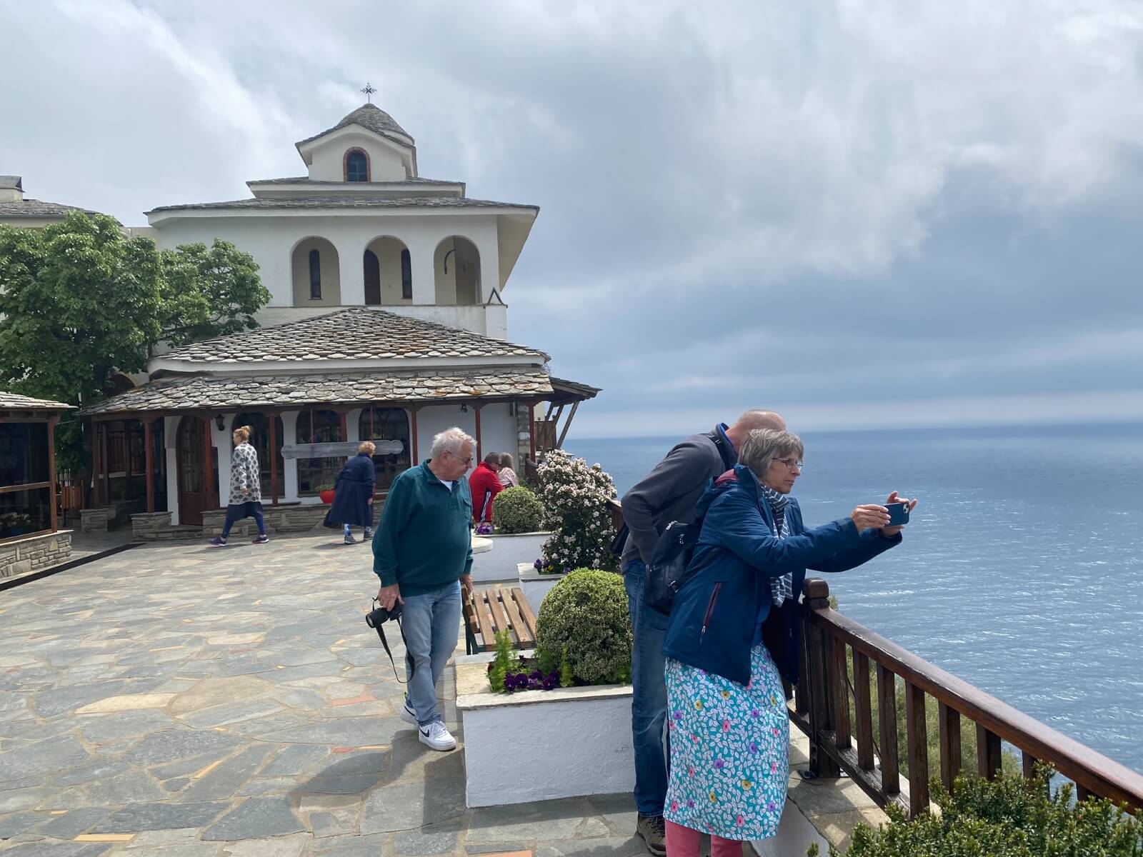 Thassos, zwölftgrößte und nördlichste bewohnte Insel Griechenlands, wurde heute mit dem Bus erkundet. Pünktlich ab 8:15 Uhr brachte uns unser Bus zum Hafen von Keramoti. Nach ca. 40 Min. mit der Fähre über das Thrakische Meer begann unsere Fahrt in Limenas einmal um Thassos auf der Küstenstraße herum. Das Wetter zeigte sich durchwachsen anfangs kühl, später mit Sonne und 19 °C busreisefreundlich. Unseren ersten Stopp legten wir im Urlauberort Limenaria ein. Über dem malerischen Hafen der Stadt thront ein ehemaliges Gebäude von Krupp, welches leider dem Verfall preisgegeben ist. Das ließ uns nicht davon abhalten, in den kleinen Gässchen einige Souvenirs zu erwerben. Thassos ist bekannt für ausgezeichnetes Olivenöl und Honig. Unser nächster Stopp ermöglichte die Besichtigung des Klosters Archangelou. Die wunderschöne Aussicht verlockte zum Fotografieren. Vorbei am Paradies- und Goldstrand von Thassos ging es zurück nach Limenas, wo in einem Hafenrestaurant eine leckere Dorade auf jeden wartete. Die vielen Eindrücke und die frische Seeluft ließen den Tag nicht langweilig werden, erzeugten aber auf der Rückfahrt schon leichte Müdigkeitserscheinungen. Die wurde jedoch je unterbrochen, als unser Busfahrer eine Schildkröte von der Kreuzung rettete, die diese quer überqueren wollte. Am Abend fand die nächste Teilnehmerbesprechung statt. Für die nächsten drei Tage gilt es wieder vieles Neues über Nordgriechenland zu erfahren.