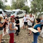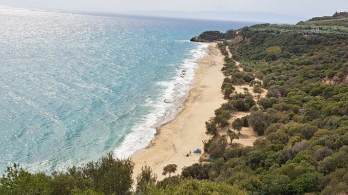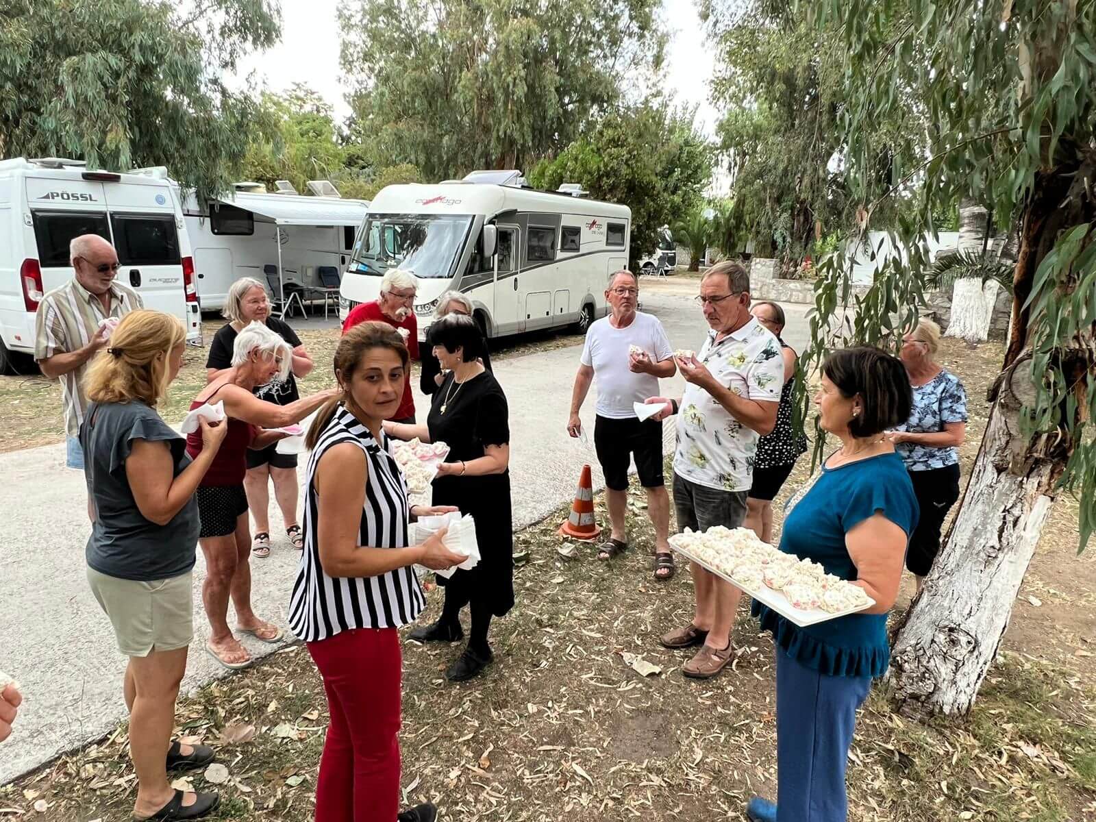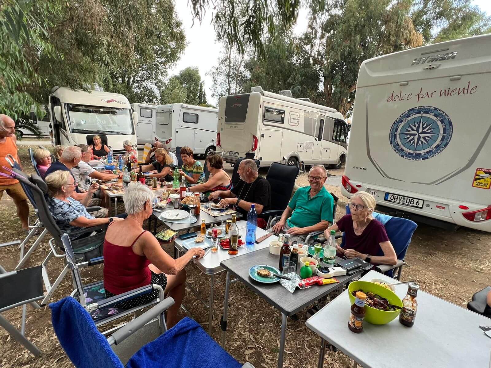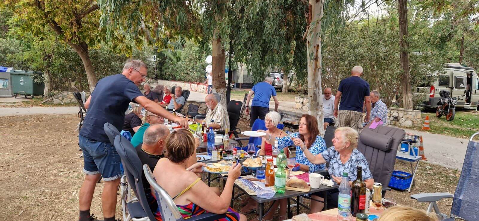 Von Sithonia geht es in Richtung Bulgarien und Türkei – weiter ostwärts nach Kavala in die Region Ostmakedonien/Thrakien. Bei dieser Route war der Weg das Ziel. Auf traumhaften Küstenstraßen führte die Fahrt vorbei an kleinen Buchten mit Sandstränden, an steilen Hängen links und rechts der kurvigen Straße, durch Hohlwege und immer wieder gab es tolle Ausblicke auf das Meer. Und natürlich war auch die eine oder andere Sehenswürdigkeit an der Strecke, die zum Halt einlud. Der Löwe von Amphipolis oder das römische Aquädukt in Kavala sind zwei davon. Auf dem CP in Kavala wurden wir von der Betreiberin mit einem leckeren Stück griechischen Kuchen begrüßt. Das anhaltend warme Wetter sorgte auch hier dafür, dass einige den Strand des Thrakischen Meeres zum Sonnenbaden nutzten. Am Abend gab es dann die Restevernichtung von der gestrigen Campertafel. Es war noch so viel übrig, dass fleißige Helfer mit 4 Grills den Appetit von allen befriedigen konnten.