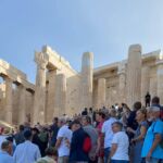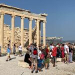 Unsere Besichtigung Athens begann mit dem Besuch der Akropolis. Wegen des weltweit ungebrochenen Interesses an der Akropolis stiegen auch wir auf einen der sieben Hügel Athens. Dort waren wir nicht die einzigen Bestauner der Stadtfestung des antiken Griechenlands in Athen. Über diese Besichtigung hier zu berichten, hieße Eulen nach Athen tragen. Wir hatten eine kompetente Führerin, welche uns die Bedeutung dieser Anlage und viele Details anschaulich erläuterte. Im Anschluss sahen wir bei einer Stadtrundfahrt Athen von sehr verschiedenen Seiten. Sie führte uns vorbei an einigen Sehenswürdigkeiten: das Parlamentsgebäude, das olympische Stadion, in dem die Spiele der Neuzeit ihren Anfang nahmen und viele mehr. Wir sahen jedoch auch Teile von Athen, die aufgrund des rasanten Wachstums der Stadt insbesondere durch die Aufnahme der Flüchtlinge aus der Türkei in den 20er-Jahre des vorigen Jahrhunderts ihr nicht gut zu Gesicht stehen. Der Nachmittag stand zur freien Verfügung. Danach brachte uns der Bus vollgeladen mit vielen neuen Eindrücken und dem einen oder anderen Mitbringsel zum CP zurück. Der anstrengende Tag und der morgige zeitige Start forderten am Abend ihren Tribut.