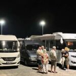 Nach der Ankunft im internationalen Hafen von Igoumenitsa wollen wir weiter, zum lokalen Hafen, um mit der Fähre nach Korfu überzusetzen. Im Hafen wartet eine Beauftragte unseres Partners in Athen bereits auf uns und ermöglicht es, dass wir uns zunächst im Hafengelände sammeln, um gemeinsam zum nationalen Hafen zu fahren. Dann erleben wir ein Novum. KUGA hat offensichtlich einen guten Namen. Wir werden mit Blaulicht eskortiert und in den nationalen Hafen geleitet. Wow. Leider haben wir wieder eine lange Wartezeit vor uns, weil bis in die späten Nachtstunden keine Fähren unterwegs sind, die Wohnmobile aufnehmen können. Aber auch die große Fähre erspart uns nicht das „Rückwärtseinparken“. Wir überwinden in gut anderthalb Stunden den letzten Abschnitt unserer Anreise und erreichen Korfu nach Mitternacht. Noch ein kurzes Stück Kolonnenfahrt und dann sind wir endlich auf unserem Campingplatz in Dassia der für die nächsten zwei Tage unser Standort sein wird. Der Campingplatzbetreiber hilft uns beim Parken und Versorgen der Womos mit Strom. Dann fallen alle in einen kurzen Schlaf, denn der Morgen mit den ersten Besichtigungen ist nur noch einige Stunden entfernt.