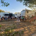 Der heutige vorletzte Fahrtag bringt uns zu unserem letzten CP auf griechischem Boden. Von da geht es in zwei Tagen zum Hafen in Igoumenitsa und weiter leider zum Ende unserer Reise nach Ancona. Die Route führt nordwärts entlang des Ionischen Meeres, benannt nach Io, einer Geliebten des Zeus. Ein Halt konnte man an der Ausgrabung des Palastes des Nestor, einem großen mykenischen Palast aus dem 16. – 15. Jahrhundert v. Chr., und natürlich auch am LIDL machen. Auf dem CP begrüßten uns ein grandioser Ausblick auf das Ionische Meer und ein wunderbarer Sandstrand, der zum Baden einlud. Am Abend treffen wir uns noch einmal, um den letzten Ouzo in seinen verschiedenen Trinkmöglichkeiten zu genießen. Danach geht es zum Abendessen, welches einige im Restaurant auf dem CP oder im nahegelegenen Restaurant Porto Marine genießen. Nach den leckeren Fischgerichten bietet sich das laue Abendwetter wieder zum Klönen an.
