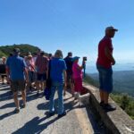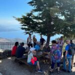 Trotz einer sehr kurzen Nacht ließen wir uns am späteren Morgen nicht abschrecken, mit Jeeps Korfus Bergwelt zu erfahren. Jeder wählte aus den bereitstehenden Fahrzeugen die Farbe seines Herzens und nach einer kurzen Einweisung für die Fahrer ging es los. Die kleinen kurvigen Straßen, die verwinkelten Bergdörfer und vor allem die Natur auf dem Weg zum höchsten Berg von Korfu, dem Pantokrator, kann man nur auf diese Weise wirklich erschließen. Bei der Abfahrt beginnt das Abenteuer. Auf Schotterpisten werden Fahrer und Beifahrer ungewöhnlich gefordert. Für alle ist es jedoch ein tolles Erlebnis, so die Natur im Norden Korfu’s zu besichtigen. Leider passieren wir aber auch immer wieder Stellen, die von den kürzlichen Waldbränden gekennzeichnet sind. Richtig durchgeschüttelt wartet auf uns in einem einsamen Bergdorf ein Essen, welches aus den auch in unserer Küche zum Teil verwendeten Zutaten mit vielen Gewürzen einen neuen Geschmack zaubert und natürlich mehr als satt macht. Aufgrund der sehr hohen Temperaturen gibt es eine eingeschränkte Fernsicht, welche verhindert, dass wir vom letzten Aussichtspunkt die schneebedeckten Gipfel des Ceraunischen Gebirges in Albanien mit seinem über 2.000 m hohem Gipfel, dem Maja eh Çikës, zu sehen bekommen. Noch ein kurzer Tankstopp und dann erreichen wir unser Camp. Die einsetzende Müdigkeit nach der kurzen Nacht und dem erlebnisreichen Tag tat ihr übriges, dass dieser Abend nicht sehr lang wurde.