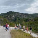 Unsere Bustour ging heute zum „Ort hinter den Bergen“ – in die Zagoria. Die Dörfer in der Zagoria waren nach dem Bürgerkrieg in Griechenland viele Jahre verlassen. Seit einigen Jahren werden die Häuser jedoch mit großem persönlichem Einsatz von ehemaligen oder neuen Besitzern liebevoll rekonstruiert. Die hohen Berge, die imposanten Schluchten sowie die vollständig aus Stein gebauten Häuser, Straßen, Kirchen und Klöster bieten heute wieder einen einzigartigen Anblick, den man einfach gesehen haben muss, wenn man Griechenland kennen will. Die Vikos-Schlucht, monumentale Steinbrücken wie die Kokoros-Brücke, die Steintreppe von Vradeto oder das Kloster Agia Paraskevi aus dem 15. Jahrhundert und nicht zuletzt das Denkmal, welches den Frauen des Pindos im 2. Weltkrieg gewidmet ist, sind auch Griechenland. Das Pindos ist ein Hochgebirge, welches die griechische Landschaft Epirus im Westen von Makedonien und Thessalien im Osten scheidet. Das waren nur einige der vielen beeindruckenden Sehenswürdigkeiten, die wir bestaunen durften. In einer Taverne in Monodendri probieren wir ein leckeres Pastitsio – ein Hackfleisch-Nudel-Auflauf mit einer leckeren Béchamel-Sauce. Jetzt ist uns klar, weshalb dieses Gericht zu den griechischen Nationalgerichten gehört. Am Abend fand die zweite Teilnehmerberatung statt. Wir haben wieder einige interessante Tage beim Erkunden des griechischen Nordens vor uns.