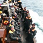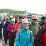 Unser Schiff zum Whale Watching ist die Faldur. Schnell werden wir mit einheitlichen Overall’s eingekleidet. Die Land-Temperatur heute 14 °C Ende Juli.
