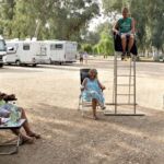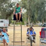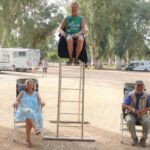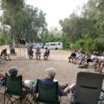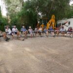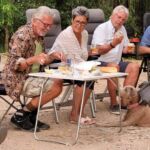 Zur Fahrerbesprechung am Abend hat die Gruppe einen speziellen Sitz für das „Trium“vir“at vorbereitet. Einen solchen Sitz sollte man als RL immer haben…
