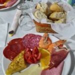 Die meisten Teilnehmer sind schon vor Tagen eingetroffen und haben sich bereits am Vorabend in der Bar ein wenig kennengelernt. Um 14.00 Uhr beginnen wir mit unserem offiziellen Begrüßungstreffen. Zuerst besprechen wir alles, was für die Reise wichtig ist und verteilen Einreiseunterlagen und kleine Geschenke. Es gibt dazu eine Einweisung der Navigeräte und der 1. Fahrtag wird schon besprochen. Dazu hat der Reiseleiter einen Rotwein spendiert und etwas Pyrenäensalami und Cracker verteilt, damit der Wein nicht so lieblos getrunken wird 😊 Um 19:00 werden spanischen Köstlichkeiten serviert. Bei Rotwein sitzen wir noch beieinander. Jedoch gehen wir, obwohl Halloween Nacht, früh zu Bett, da wir morgen früh zur Fähre fahren und nicht wie Nachtgespenster aussehen wollen.