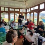 Die meisten Teilnehmer sind schon vor Tagen eingetroffen und haben sich bereits am Vorabend in der Bar ein wenig kennengelernt. Um 14.00 Uhr beginnen wir mit unserem offiziellen Begrüßungstreffen. Zuerst besprechen wir alles, was für die Reise wichtig ist und verteilen Einreiseunterlagen und kleine Geschenke. Es gibt dazu eine Einweisung der Navigeräte und der 1. Fahrtag wird schon besprochen. Dazu hat der Reiseleiter einen Rotwein spendiert und etwas Pyrenäensalami und Cracker verteilt, damit der Wein nicht so lieblos getrunken wird 😊 Um 19:00 werden spanischen Köstlichkeiten serviert. Bei Rotwein sitzen wir noch beieinander. Jedoch gehen wir, obwohl Halloween Nacht, früh zu Bett, da wir morgen früh zur Fähre fahren und nicht wie Nachtgespenster aussehen wollen.