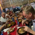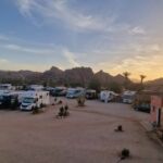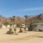 Zuerst geht es noch einmal durch Agadir. Schon treffen wir uns wieder! Es gibt hier einen Supermarkt, der alkoholische Getränke verkauft! Das ist eher selten in Marokko. So nutzen wir die Gelegenheit auch gleich unsere Lebensmittel Bestände aufzufüllen. Der erste Teil der Strecke hinter Agadir ist eher anspruchslos. Auf gerader Straße, hier und da eine Polizeikontrolle, an die wir uns mittlerweile gewöhnt haben, geht es später nach Osten in Richtung des Antiatlas. Dieser ist nicht so hoch wie der Atlas und ganz anders vom Anblick. Unsere Straßen werden schmaler, steigen allmählich an und führen uns hinein in dieses neue, unbekannte Gebirge. Die Reise durch den Hohen Atlas ist landschaftlich ein sehr schönes Erlebnis. Die Strecke zu unserem nächsten Camp durch den Antiatlas kaum zu toppen. Man stellt sich die Frage, wie die sehr freundlichen Menschen in dieser Region ihren Lebensunterhalt bestreiten. Wir sind beeindruckt. Schließlich – mitten in diesem No where taucht unser Ziel auf. Wir sind gespannt. Rasen gibts hier nicht, aber alles andere, was ein Camper mit Wohnmobil benötigt. Wir sind zufrieden! Am Abend treffen wir uns zum Abendessen im kleinen Restaurant des Campingplatzes. Der Abend klingt dann unter dem Sternenhimmel aus. Es war erneut eine tolle Strecke, die wir heute absolviert haben.