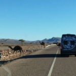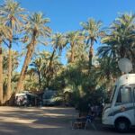 Wieder ist es nur eine kurze Etappe, die vor uns liegt. Zudem eine gut ausgebaute und meist gerade Straße. Also kommen wir zügig voran. Die Landschaft, Luftlinie circa 30 Kilometer von der algerischen Grenze entfernt, ist weiterhin sehr karg. Überraschend für uns findet plötzlich Landwirtschaft statt. Wir sehen hauptsächlich Melonenanbau. Möglich wird das aber nur durch die in manchen Bereichen installierten Bewässerungsanlagen. Auf Schildern wird vor Dromedaren gewarnt, die möglicherweise die Straße kreuzen. Die Schilder stehen dort zu Recht! Am Ziel sehen wir uns noch das Provinzstädtchen Zagora an. Dort stehen wir in einem wunderschönen Oasenhain.