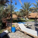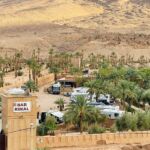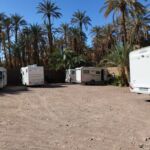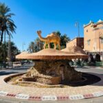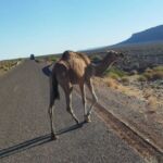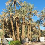 Wieder ist es nur eine kurze Etappe, die vor uns liegt. Zudem eine gut ausgebaute und meist gerade Straße. Also kommen wir zügig voran. Die Landschaft, Luftlinie circa 30 Kilometer von der algerischen Grenze entfernt, ist weiterhin sehr karg. Überraschend für uns findet plötzlich Landwirtschaft statt. Wir sehen hauptsächlich Melonenanbau. Möglich wird das aber nur durch die in manchen Bereichen installierten Bewässerungsanlagen. Auf Schildern wird vor Dromedaren gewarnt, die möglicherweise die Straße kreuzen. Die Schilder stehen dort zu Recht! Am Ziel sehen wir uns noch das Provinzstädtchen Zagora an. Dort stehen wir in einem wunderschönen Oasenhain.