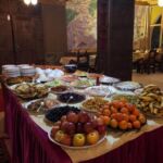 Wir machen einen Abstecher in die Todraschlucht. Anfangs ist die Schlucht noch recht breit, was sich aber schnell ändert. Nach dem Abstecher in die Schlucht geht es nun endlich Richtung Sandwüste. . Wir fahren von dort Richtung Erfoud. Die Stadt liegt inmitten einer großen Region offen liegender fossiler Funde. Dort besuchen wir gemeinsam eine Steinschleiferei. Sehr wertvolle Funde werden hier durch filigrane Arbeit wieder sichtbar gemacht. Manch einer kauft etwas. Erfoud ist auch die Hauptstadt der Datteln und dort gibt es jedes Jahr im Oktober das gerühmte Dattelfest, ein etwas anderes „Oktoberfest“ Von dort fahren wir alle gemeinsam, ausnahmsweise einmal im Konvoi direkt zu unserem Platz vor den Sanddünen. Eine atemberaubende Erfahrung, direkt vor den Dünen zu campen.
