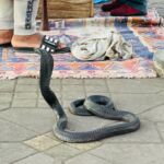 Wir starten den Tag mit einer Besichtigung einer Arganöl-Manufaktur. Hier sind im Wechsel 4 Frauen mit der Herstellung des kostbaren Arganöls beschäftigt. Das reine und ungemischte Arganöl gibt es nur in der Region zwischen Essaouira und Marakech. Zwei Sorten des Öls werden hergestellt, für den Verzehr und für die Kosmetik, alles in mühevoller Handarbeit. Zusätzlich gibt es Kosmetika für die Haut, Lippen und Haare. Eine meist unspektakuläre Strecke liegt nun vor uns. Leider gab es dann beim Fahrzeug von Mieke und Wolle ein größeres Problem. Die halb automatische Gangschaltung funktioniert nicht mehr, d. h. Stillstand, kein Weiterkommen mehr. Es wurde der Abschleppdienst gerufen und die ganze Fuhre wurde zum Campingplatz bei Marakech gefahren. In der Hoffnung das alles repariert werden kann, warten wir die nächsten Tage ab, da wir sowieso 3 Tage in Marrakesch verbleiben. Am Abend stürzen wir in das bunte Treiben auf dem Gauklerplatz in Marrakech. Einkaufsmöglichkeiten an allen Ecken und natürlich die Gaukler. Besonders haben es unserer Truppe die Schlangenbeschwörer angetan. Ein besonderer Abend endet mit der Heimfahrt durch die Nacht zum Camp.