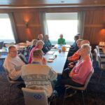 Die Fährgesellschaft hat ein Einsehen für ihre Passagiere, die erst am frühen Morgen verladen wurden. Sie bieten einen Brunch an, den man bis 12:30 Uhr genießen kann. So gegen 11:00 Uhr treffen wir uns deshalb zum ausgiebigen Frühstück. Am Nachmittag findet unsere erste Beratung statt. Wir besprechen, wie wir gemeinsam diese Reise zu einem stressfreien, erholsamen und unvergesslichen Urlaub gestalten können. Danach starten wir die erste Teilnehmerberatung mit Hinweisen für die Fahrt zum Camp, die Stadtbesichtigung von Helsinki und für unseren ersten Fahrtag nach Heinola. Auch das gemeinsame Abendessen biete gute Gelegenheiten, sich weiter kennenzulernen und Wünsche und Erwartungen für diese Abenteuerreise auszutauschen. Nach einem letzten Drink an der Bar zieht es allen in die Kabinen. Die Müdigkeit von der Anreise steckt doch noch in den Gliedern.