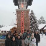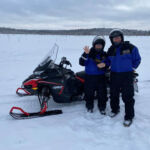 Den Rosenmontag verbringen wir am Nordpolarkreis in Rovaniemi. Wir können den Tag mit viel Ruhe beginnen. Am Vormittag ist Freizeit angesagt. Am Nachmittag erkunden wir die Umgebung unseres Camps mit dem Snowmobil. Zuerst geht es aber ans „Anhosen“. Nach einer kurzen Einweisung besteigen wir unsere Snowmobile. Dann geht die wilde Tour los. Wir erfahren eine tolle neue Anforderung, Fahrzeuge zu beherrschen, auf einer Buckelpiste, mit jeder Menge von Anforderungen gymnastischer Beweglichkeit an Fahrer und Sozius. Unsere außergewöhnliche Fähigkeit, ein rasantes Tempo mitzufahren, lobte unser Guide aus Österreich. Wir konnten in der gebuchten Zeit eine längere Strecke fahren als üblich. Das forderte uns nochmals an steilen Ab- und Auffahrten. Am Abend verlangte der Rosenmontag seinen Tribut. Wir kommen zwar alle nicht aus einer Karnevalshochburg, aber mit Glühwein und der Musik von Höhner, Black Fööss etc. lässt es sich auch bei -7 C° gut feiern und schunkeln.