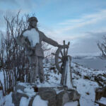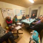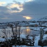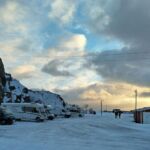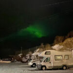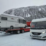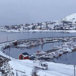 In der Nacht hat es ordentlich (30 cm) geschneit. Deshalb war vor der Abfahrt nach Lodingen auf den Lofoten erst mal Schneeschieben angesagt. Dabei durfte auch das Dach nicht vergessen werden. Danach konnte man noch die guten Ver- und Entsorgungseinrichtungen nutzen. Dann begann unsere Fahrt in Richtung Lofoten. Der Winter zeigt sich auf diesen ca. 300 km noch mal von seiner für Autofahrer weniger freundlichen Seite. Glatte Straßen und vereinzelt dichtes Schneetreiben erforderten permanente Aufmerksamkeit. Bei diesen Witterungsverhältnissen kam es dann schon mal vor, dass man von großen Sattelzügen überholt wurde, deren Fahrer wohl aufgrund ihrer Erfahrungen weniger Respekt vor den glatten Straßen hatten. Am späteren Nachmittag trafen alle wohlbehalten, aber etwas müde auf dem schönen Stellplatz in Lodingen ein. Den Abend nutzten wir, um diesen anstrengenden Tag bei etwas Glühwein und der Besprechung der nächsten Fahrtage ausklingen zu lassen.