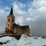 Der Sonntag beschert uns nochmals einen anspruchsvollen Start auf unserer Fahrt über die wunderschönen Lofoten. Kurz nach dem Verlassen von Lødingen geht es eine 11%ige Steigung zu einer Passstraße hinauf. Aufgrund der ausgiebigen Trainings der letzten Fahrtage meisterten alle diese letzte Prüfung für den Abschluss „Erfahrener Womo-Winter-Fahrer für Skandinavien“ erfolgreich. Das beginnende Tauwetter um die 5 °C sorgte später für teilweise völlig abgetaute Straßen auf den Lofoten. Damit konnten sich auch die Fahrer der Womos wieder etwas der beeindruckenden bizarren Landschaft der Inselgruppe widmen. Einem kurzen Stopp an der Lofotenkathedrale, der größten Holzkirche Nordnorwegens, folgte der Besuch des weltweit größten Langhauses aus der Wikingerzeit. Neben einer kompetenten Führung konnten wir uns anhand der beeindruckenden Ausstellung zur Lebensweise der Wikinger in das harte Leben dieser Menschen zurückversetzen. Eine herzhafte Fischsuppe, die wir unter Begleitung von Musik aus der Zeit der Wikinger, genießen, tat ein Übriges, sich in dem Langhaus ein bisschen wie ein Wikinger zu fühlen. Trotzdem waren alle froh, danach unseren CP in Moskenes zu erreichen, der uns einen traumhaften Ausblick aus dem schön warmen Wohnmobil auf die Felsen und das Europäische Nordmeer bietet. Morgen ist mit einem Ruhetag und mit einer Campertafel wieder Entspannung geplant.